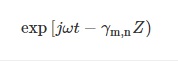 Величина, известная как постоянная распространения, обозначается греческой буквой гамма, γ. Постоянная распространения волновода определяет фазу и амплитуду каждого компонента или моды волновода для волны, когда она распространяется вдоль волновода. Коэффициент для каждого компонента волны может быть выражен как: